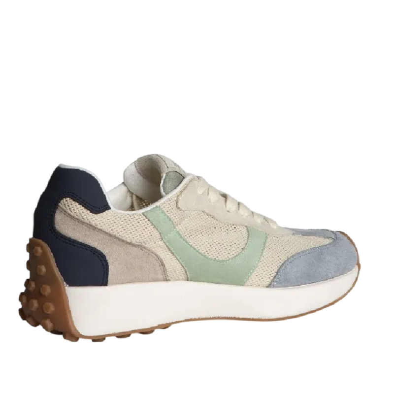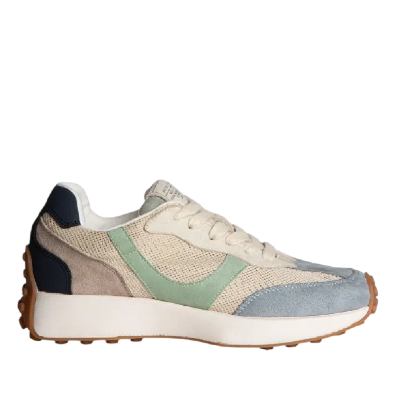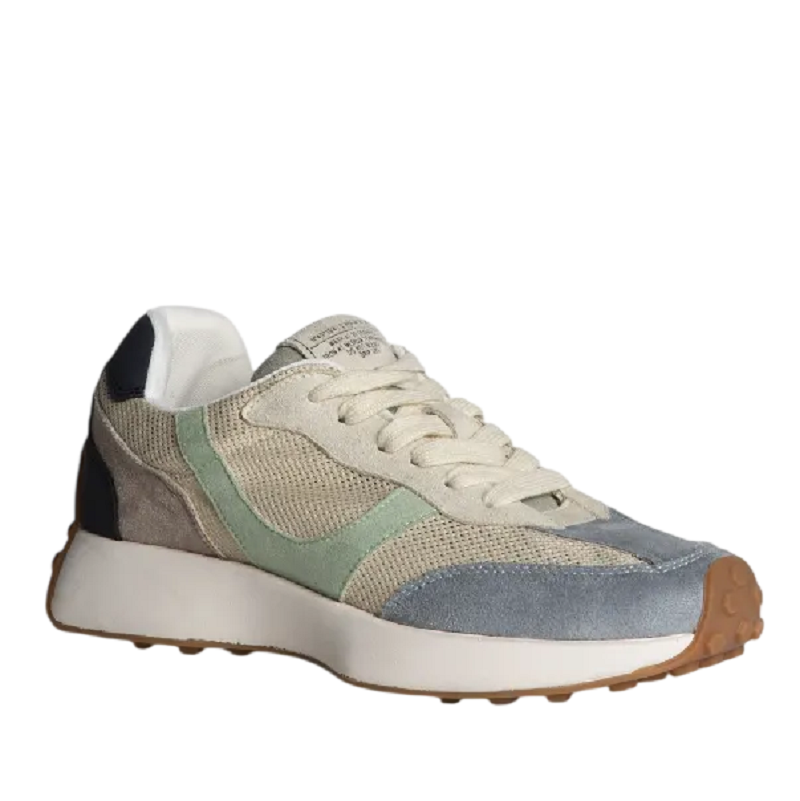 Zapatilla deportiva estilo running con suela dentada para mayor tracción y cierre de cordones de seis pasadas. Diseño moderno con corte en combinación de materiales y colores.