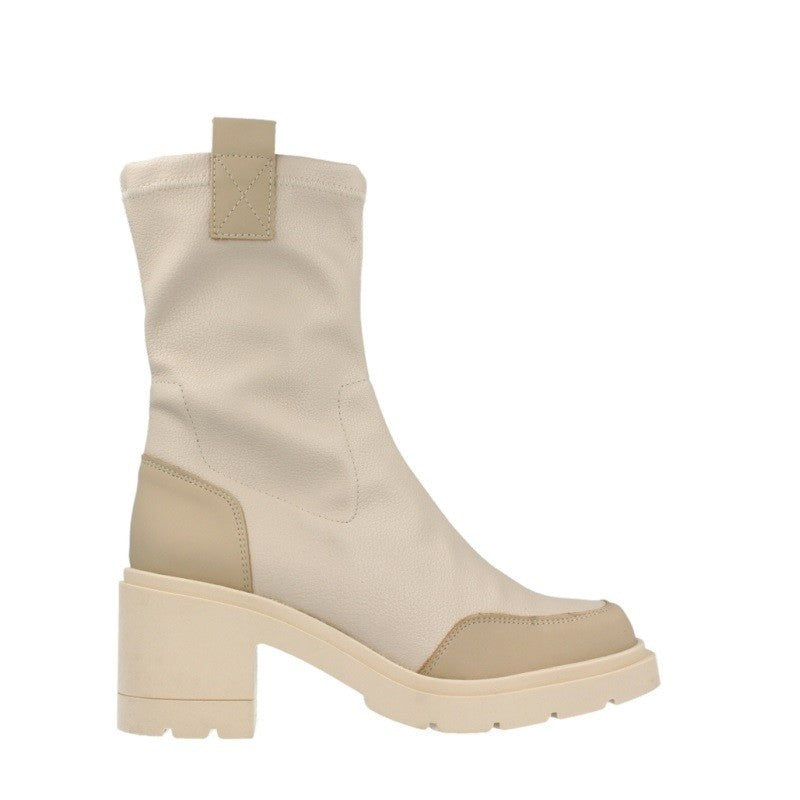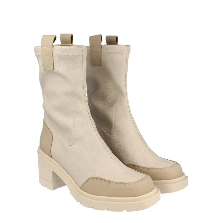 Botí de la marca Itse, model Heda. Exterior del botí de pell de color beig i crema. Interior del botí de folre polar de color blanc. Botí amb taló de 6 cm, incloent 2 cm de plataforma. Botí amb plantilla encoixinada per garantir el màxim confort a cada pas. Botí amb alçada de canya de 20 cm. El botí Heda de Itse és un botí must-have per a aquesta temporada, ja que és una sabata còmoda, versàtil i estilosa.