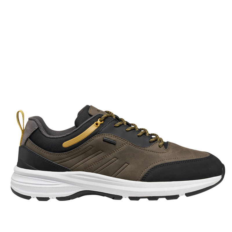 Zapatillas transpirables y completamente impermeables para hombre con un diseño moderno, perfectas para el mal tiempo. Esta versión luce un empeine de efecto nobuk en verde militar y negro, con detalles refinados y una suela de goma con un agarre excelente. Senales ABX será la solución ideal para afrontar los días en la ciudad con confianza, incluso con mal tiempo.