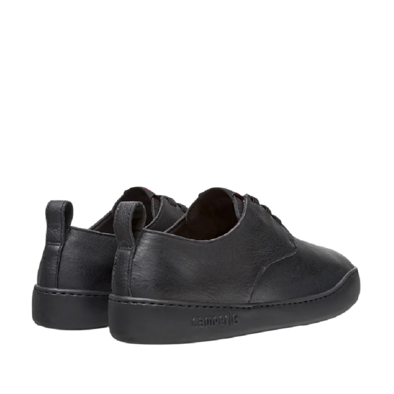 Descubre el Camper Peu Touring, el sneaker masculino que combina estilo urbano con confort excepcional. Confeccionado en piel de becerro negra de primera calidad, cuenta con cordones elásticos para un ajuste sin esfuerzo y una plantilla OrthoLite® Recycled™ extraíble que proporciona soporte duradero. La suela de EVA con un 20% de material reciclado ofrece amortiguación ligera y flexibilidad, mientras que el forro de poliéster reciclado refleja nuestro compromiso con la sostenibilidad. Perfecto para el día a día, este modelo versátil te acompañará con elegancia y funcionalidad en cada paso.