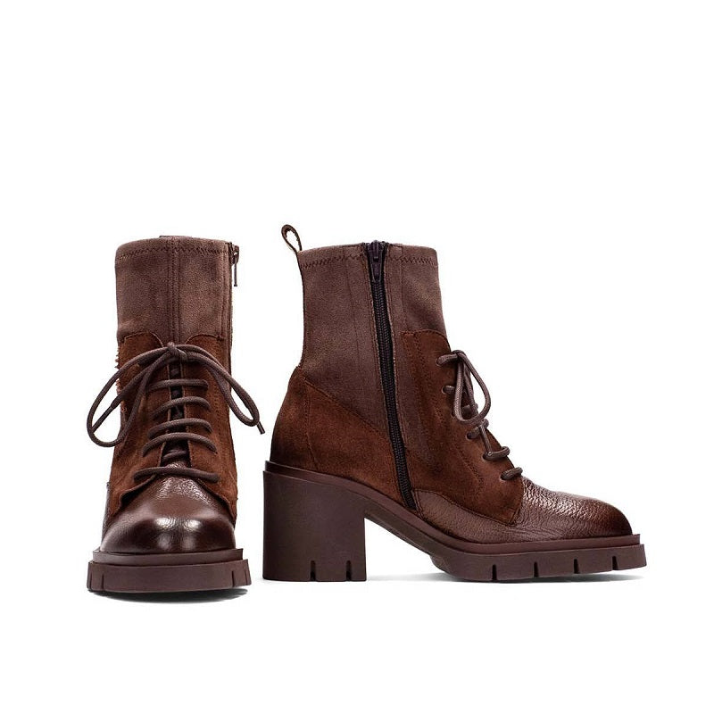 Este botín acordonado destaca por su combinación de piel y tejido elástico que se adapta al pie para ofrecer máximo confort. La cremallera lateral facilita el calce, mientras que su tacón de 7 cm realza la figura con elegancia. Su forro interior, 100% transpirable y termorregulador, mantiene los pies frescos y secos durante todo el día. Además, la tecnología Triflow proporciona triple almohadillado que absorbe impactos, brindando una pisada suave y acolchada. Ideal para quienes buscan estilo y bienestar en cada paso.
