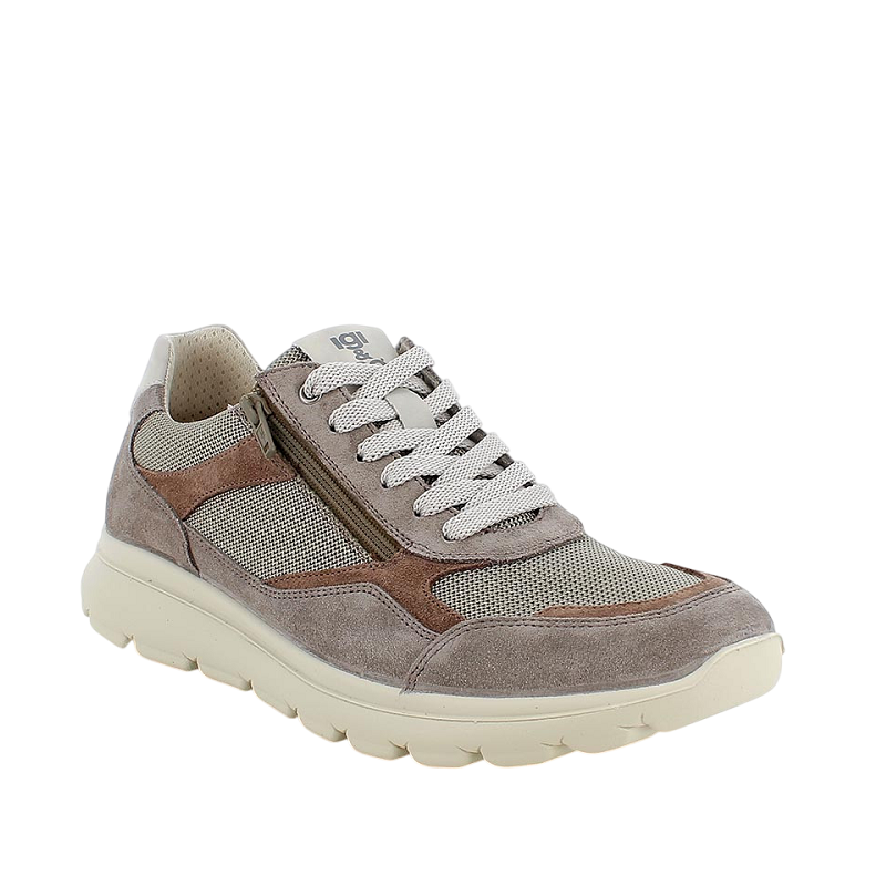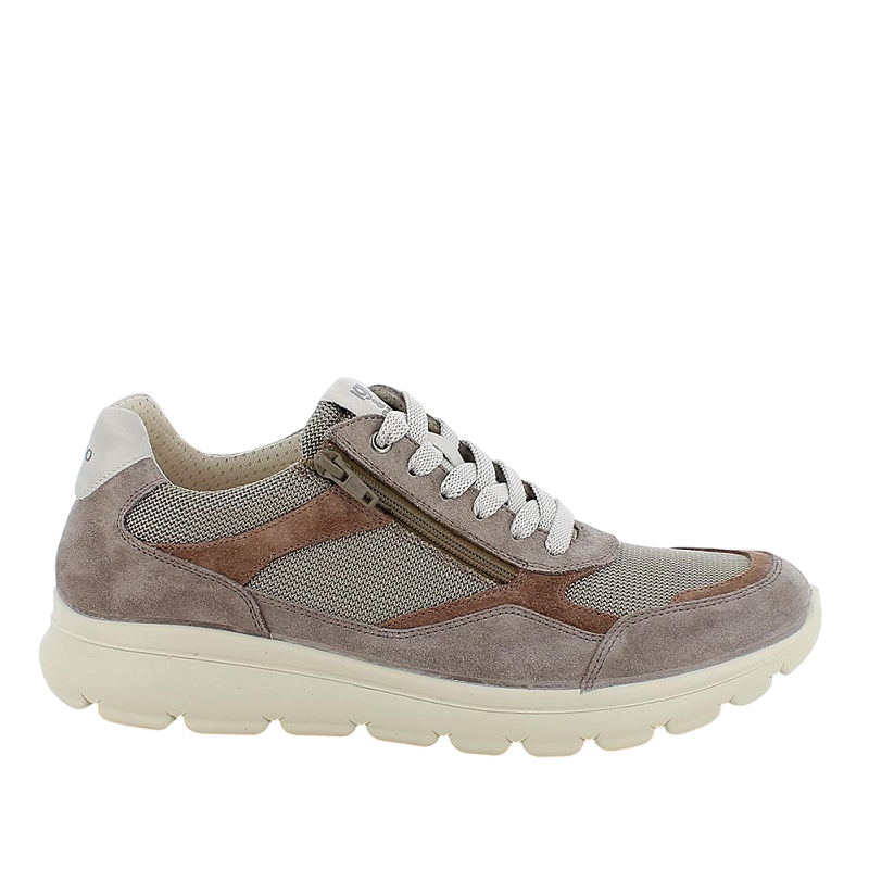 Zapatillas deportivas de piel de ante y tejido técnico, con inserciones en contraste que aportan un look moderno y dinámico. El empeine combina suavidad y transpirabilidad, mientras que la suela garantiza amortiguación, ligereza y soporte durante la marcha. La suela exterior con diseño moldeado mejora el agarre y la estabilidad. Ideales para quienes buscan confort diario, estilo urbano y versatilidad, perfectas para acompañar conjuntos casual y smart casual con un toque deportivo y refinado.