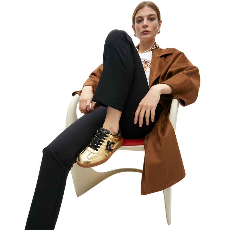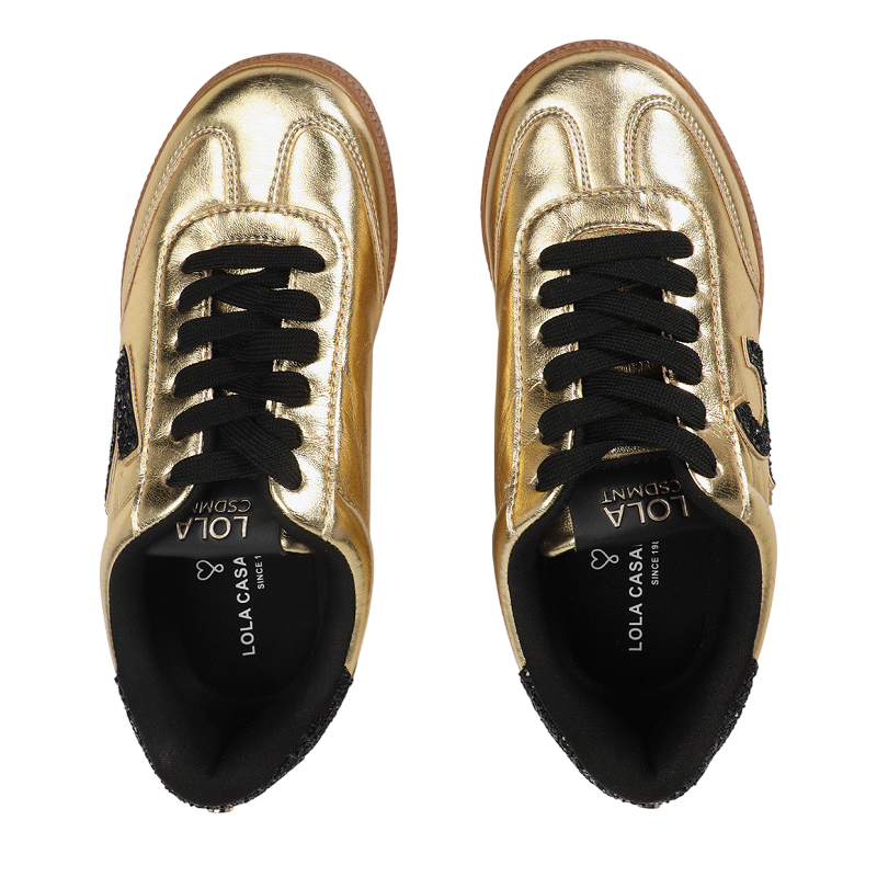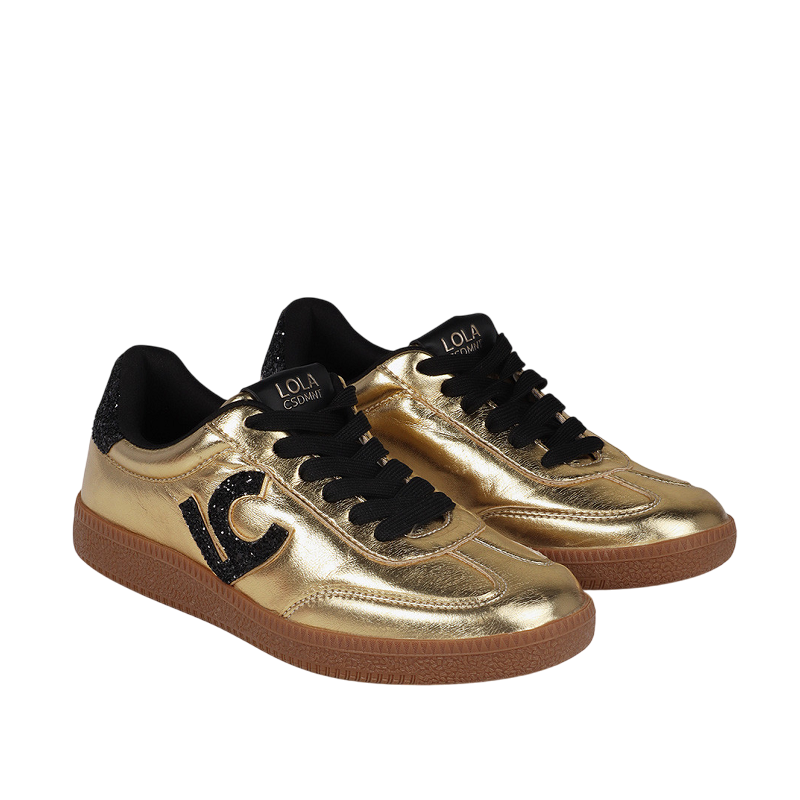 Estas zapatillas deportivas en acabado metalizado dorado destacan por su diseño con detalles en efecto purpurina, aportando un toque de sofisticación y estilo único. Su cierre de cordones permite un ajuste seguro, mientras que la suela de goma antideslizante garantiza comodidad y estabilidad en cada paso. El logo lateral añade un detalle distintivo que realza su personalidad. Perfectas para quienes buscan combinar moda y funcionalidad en su calzado diario.