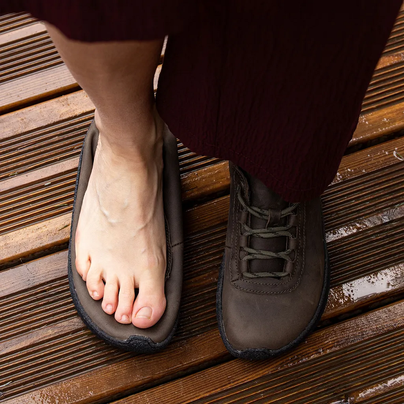 Inspirada en las montañas que se alzan libres, Oroel es una zapatilla minimalista en piel arizona leather color terra diseñada para quienes desean reconectar con el entorno y consigo mismos. Su diseño ligero y flexible ofrece una experiencia descalza con cada movimiento. La naturaleza es tu terreno, el equilibrio tu camino.