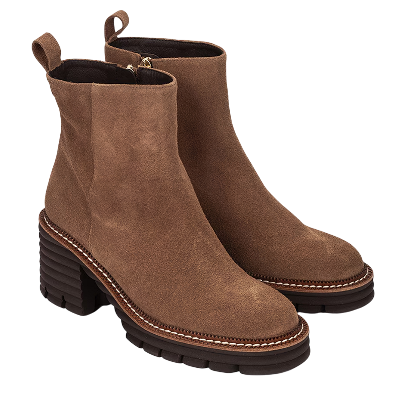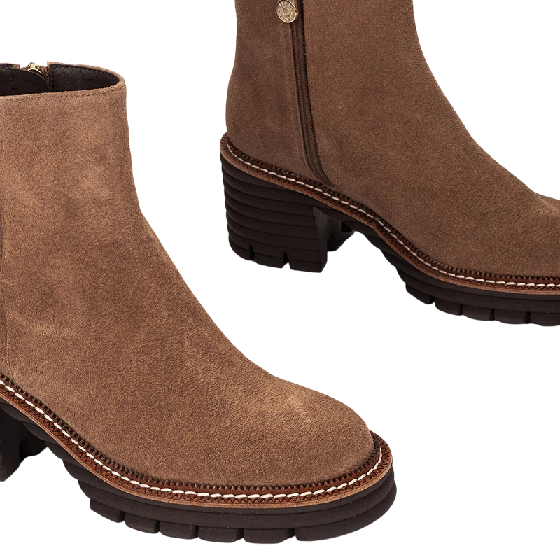 Este botín de piel suave combina un diseño moderno con una comodidad excepcional. Su ajuste ergonómico facilita el calce, mientras que el tacón junto con la plataforma delantera garantizan estabilidad y confort durante todo el día. Perfecto para quienes buscan estilo sin renunciar a la practicidad.